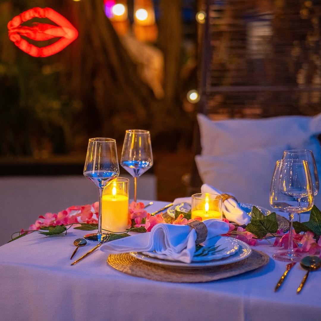 Cenas privadas en la laguna, desayunos a la cama, decoración con pétalos. Ideal para aniversarios y ocasiones especiales.